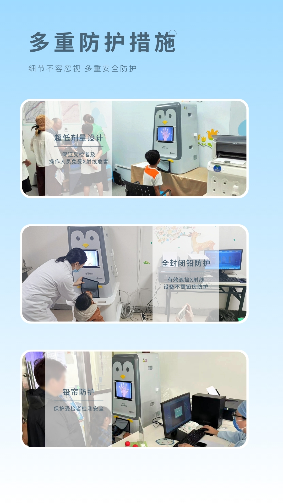 產品適用兒童醫院、婦幼保健院、各級醫院的兒保科,體育研究機構,體育學校等,用于對青少年骨齡檢測與體格發育評價。