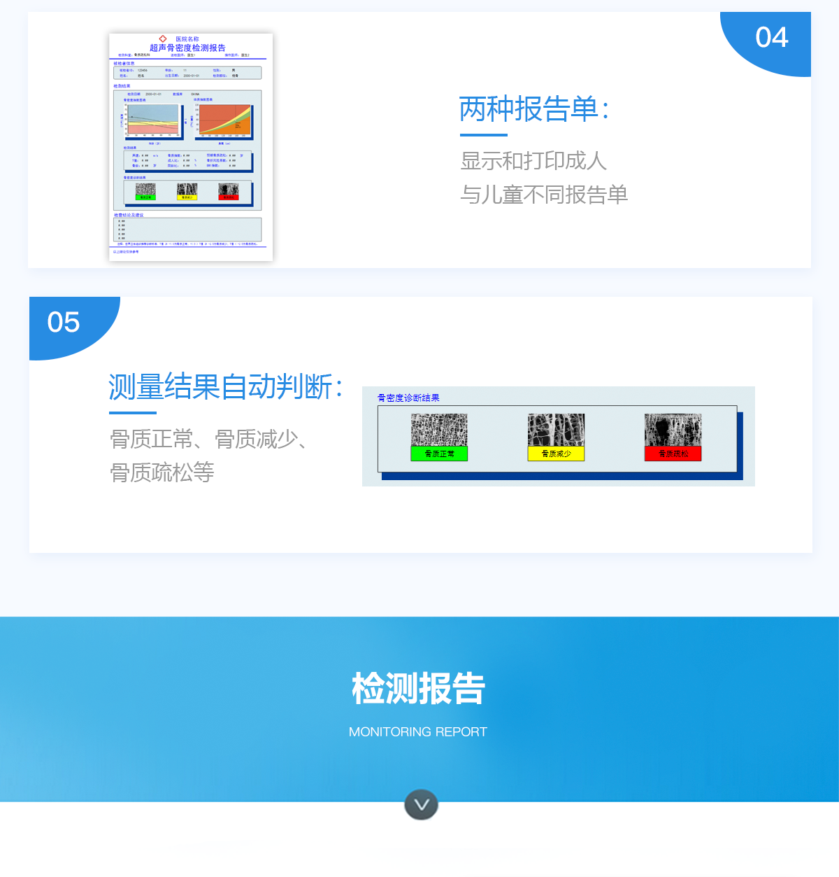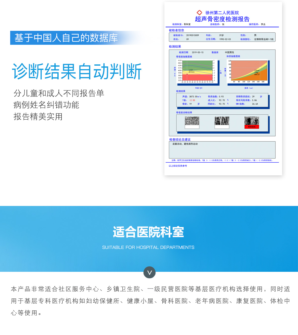■ 軟件優(yōu)勢(shì)::BMD-A系列超聲骨密度檢測(cè)儀一臺(tái)儀器裝配有智能分析系統(tǒng),經(jīng)濟(jì)實(shí)用。可測(cè)量0-100歲人群。